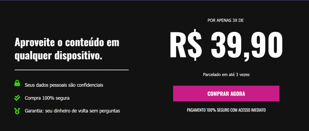 Assim que finalizar a compra, você terá acesso imediato e poderá contar com uma equipe de suporte especializada.
